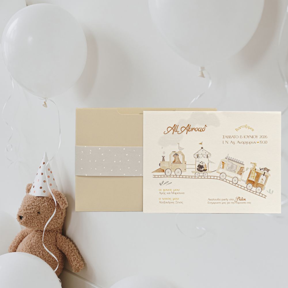 Προσκλητήριο βάπτισης για αγόρι με θέμα "Little Traveller"